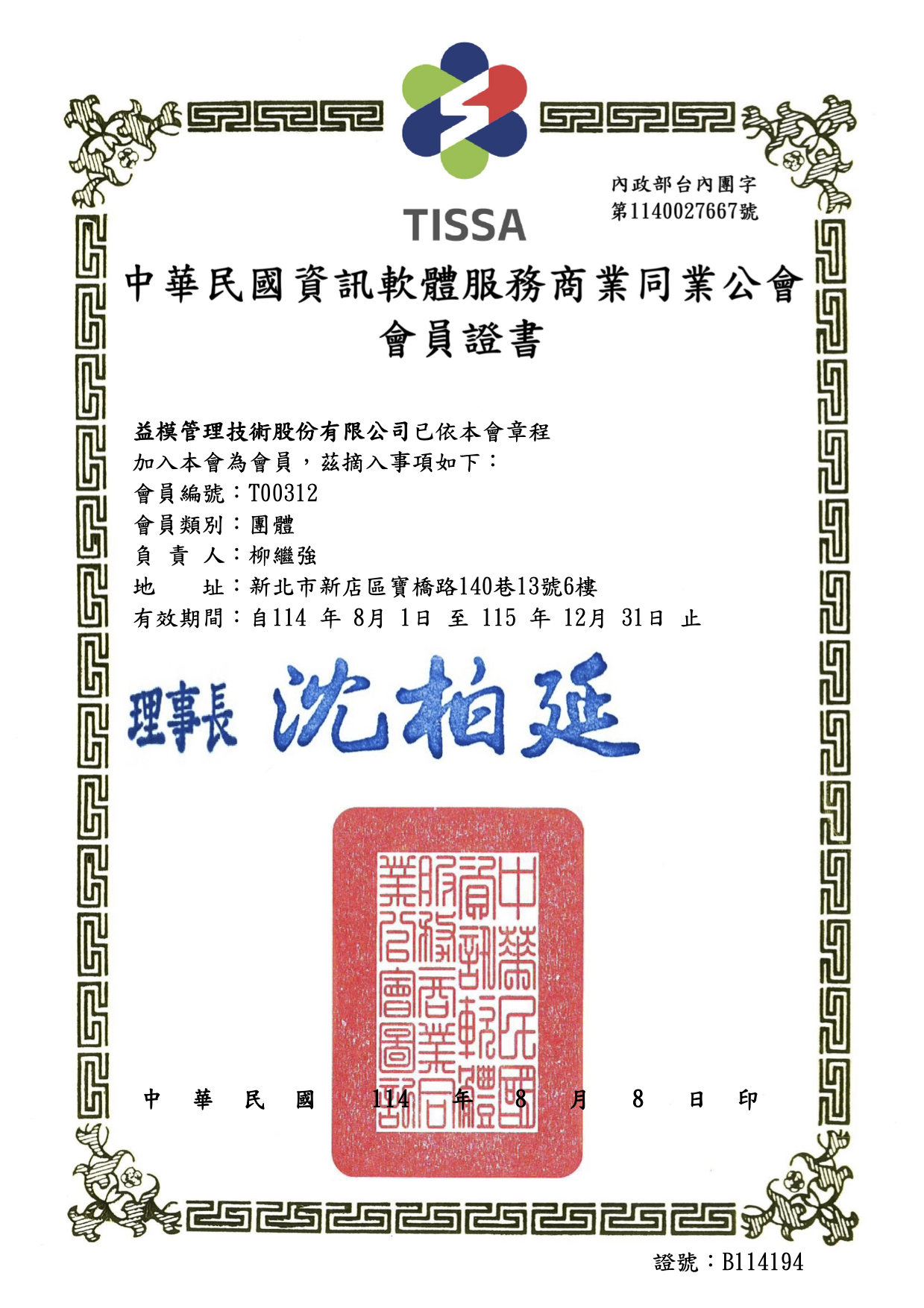 益模正式加入資訊軟體服務商業同業公會,象徵我們在專業領域的持續精進與產業鏈結: