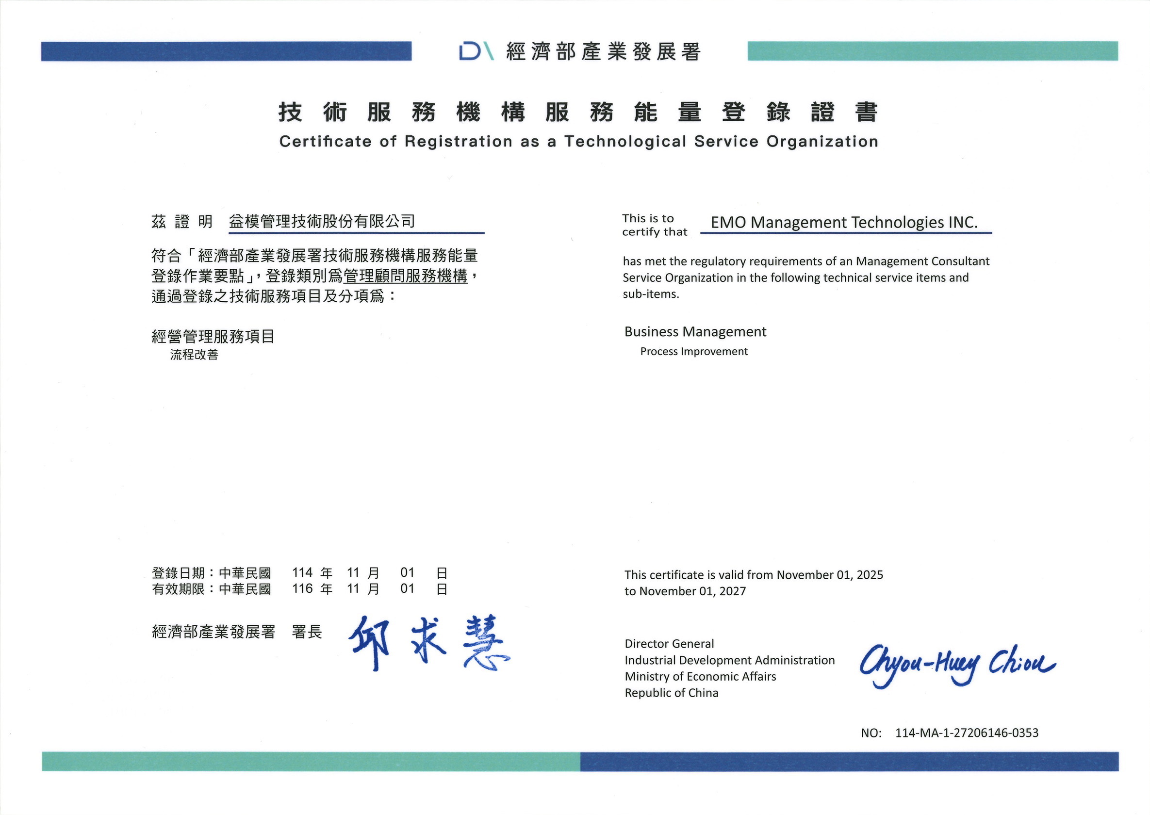 【益模管理技術】榮獲經濟部產業發展署「技術服務能量登錄」證書 (證號:114-MA-1-27206146-0353)