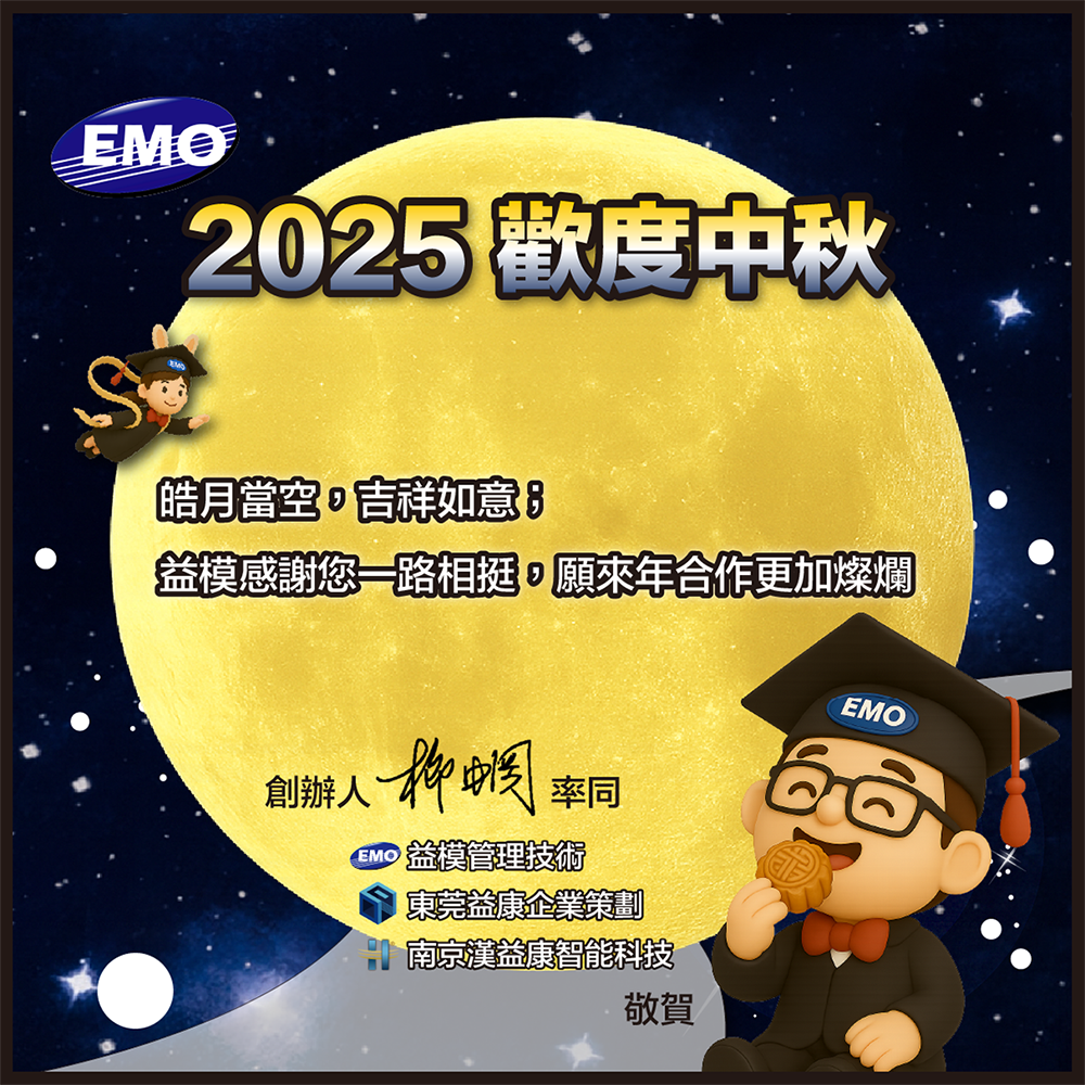 值此中秋佳節之際,益模管理技術謹致以最誠摯的祝福, 感謝各界夥伴長期支持與厚愛,願彼此合作更加圓滿,共創未來燦爛。